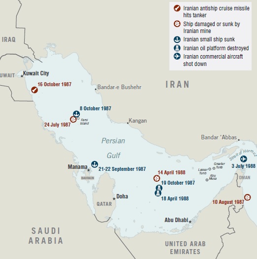 And of course, one of the great tragedies that emerges in the summer of 1988 is one of our naval vessels shoots down an Iranian Airbus, by mistake, but nevertheless with a great loss of civilian life on this civilian airliner. That, in itself, generates a sequence of events that comes back to haunt us. So it’s interesting to look at these in hindsight. We used to look at them as kind of discrete events, not tied to each other, and seen in a vacuum. But from a distance, I think we can see more of a pattern.