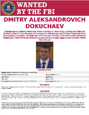 Regarded as an experienced hacker, Dokuchaev also worked at the (2nd department of operative management) FSB Information Security Center (ISC). Dmitry Dokuchaev was thus a colleague of Mikhailov’s at the FSB.