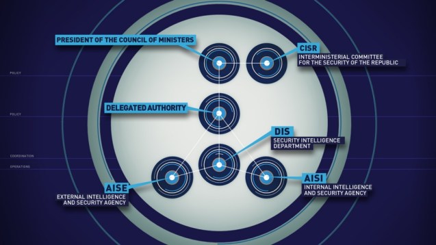 Italy’s “Intelligence System for the Security of the Republic” is the collective name given to the authorities and organizations responsible for intelligence policies, intelligence coordination and intelligence operations.