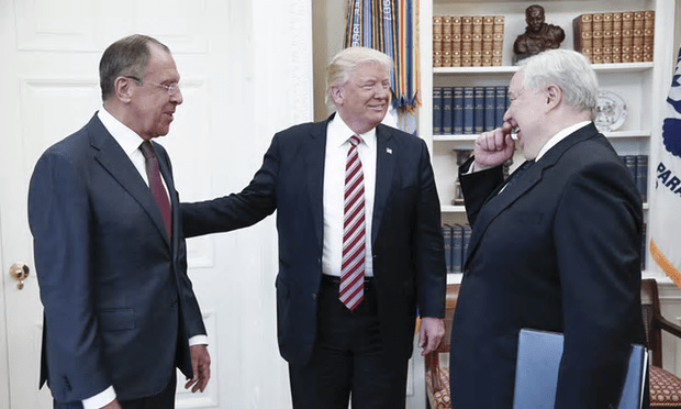 Donald Trump with foreign minister Sergei Lavrov and ambassador to the US Sergey Kislyak in the White House