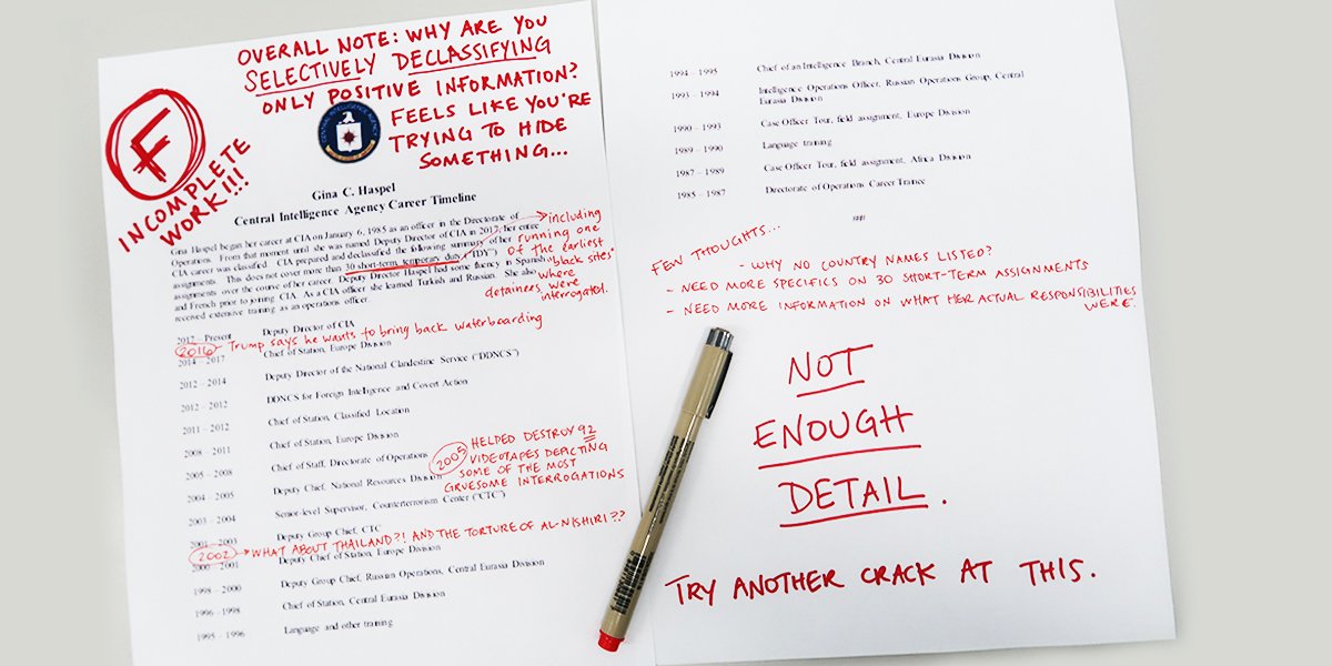 “The CIA’s timeline on Gina Haspel leaves a little something lacking… namely any details at all.”