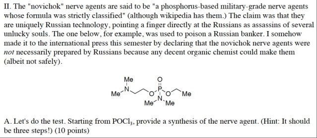 One question on the final exam of the organic synthesis course by Professor Collum at Cornell must have caused a bit of a surprise among the 1st year graduate students.