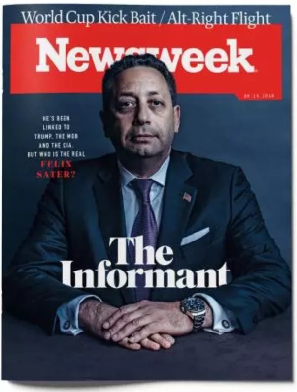 UPDATE (June 8 2018) — Trump business associate Felix Sater makes the cover of next week’s issue of Newsweek.
