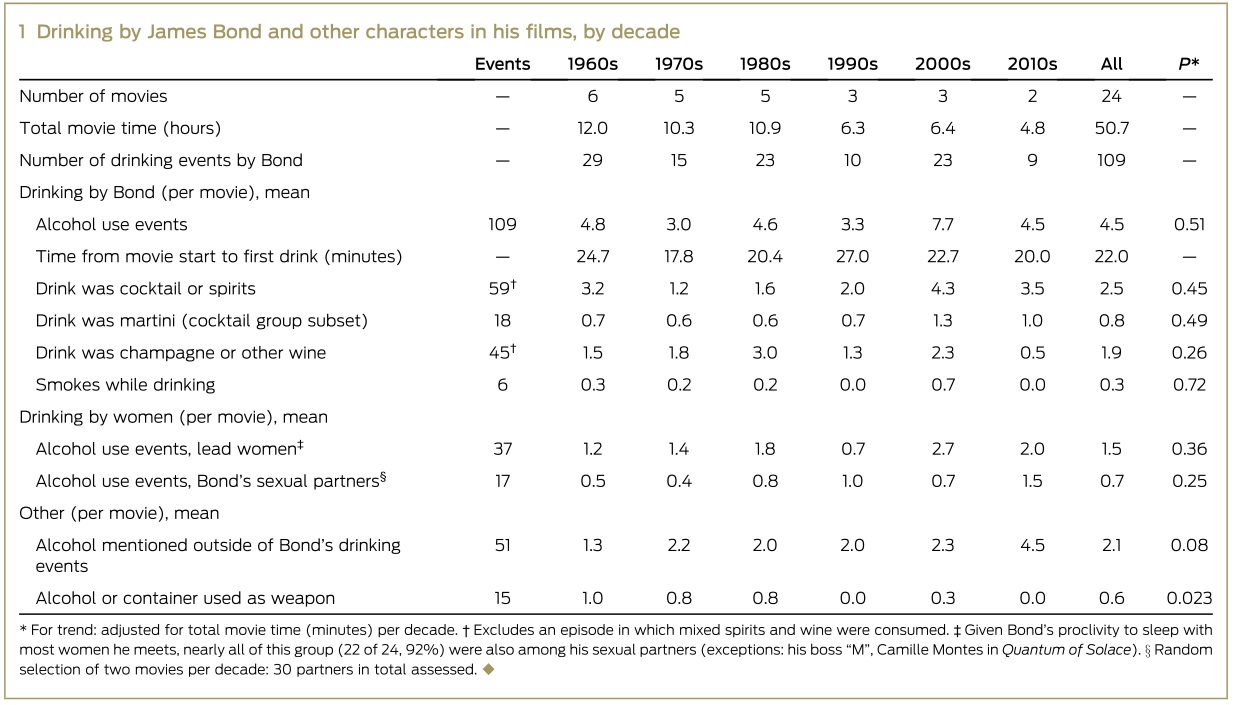 “There is strong and consistent evidence that James Bond has a chronic alcohol consumption problem at the ‘severe’ end of the spectrum. He should seek professional help and try to find other strategies for managing occupational stress.”