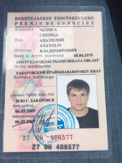 “According to the OSAGO insurance policies database, this driver’s license is indeed registered in the name of Anatoly Vladimirovich Chepiga.”