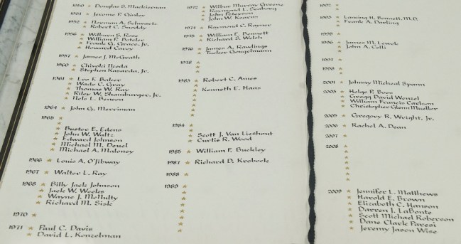 Since the attacks of September 11 2001, 55 stars have been added to the Book of Honor and the Memorial Wall.