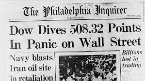 Combined with a myriad of economic factors, this helps to set off an unprecedented 508 point downpour in the Dow Jones Industrial Average, leaving it at 1738.74.