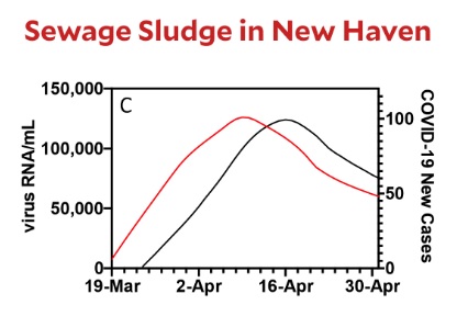 The red line in the figure above shows the concentration of corona-virus in sewage sludge.
