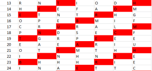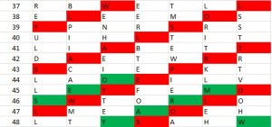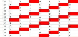 Obviously, the letters have been scrambled around? The question is how? As I said in the introduction, I will tell you how the NSA solved this transposition cipher in a following post, but today I wish to describe an “artistic” rather than “mathematical” solution! Hang on! You will soon understand why…
