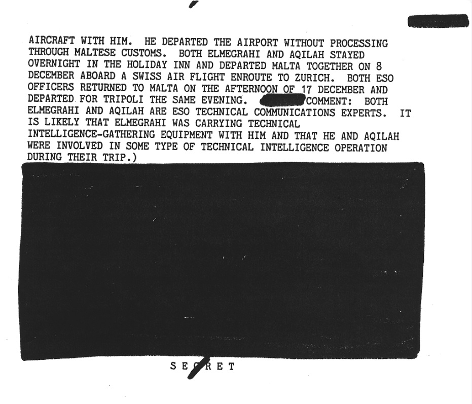The CIA station in Malta had a Libyan agent — Majid Giaka — keeping them informed of all arrivals and departures of ESO officers to and from Luqa airport in Malta.