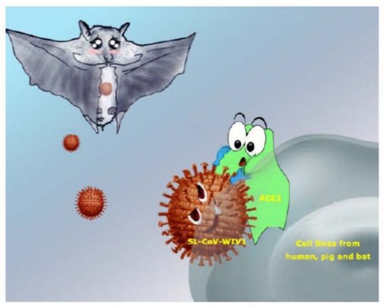 On November 1, 2013, Patricia Conrad received an email from NIH official Greg Folkers with a cartoon depicting a bat depositing coronavirus particles attacking human ACE2 receptor cells.