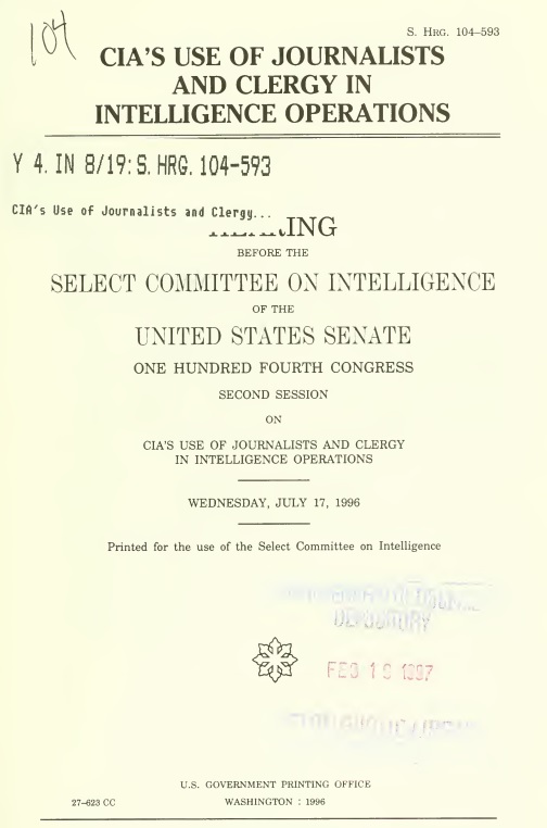 Flashback — In 1976, The Church Committee revealed that the CIA was relying on journalists for its own work.