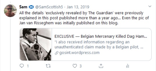 On January 12 2019, The Guardian reported that Jan van Risseghem was indeed the person responsible for the death of Dag Hammarskjold and his crew.