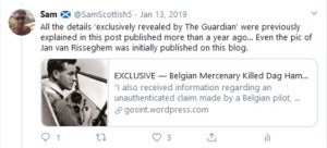 January 12 2019 — On November 2 2017, I suggested that Belgian mercenary Jan Van Risseghem may be responsible for the death of Dag Hammarskjold. The story was based on the testimony of a very credible source (Pierre Coppens) who had accepted to talk to Intel Today.