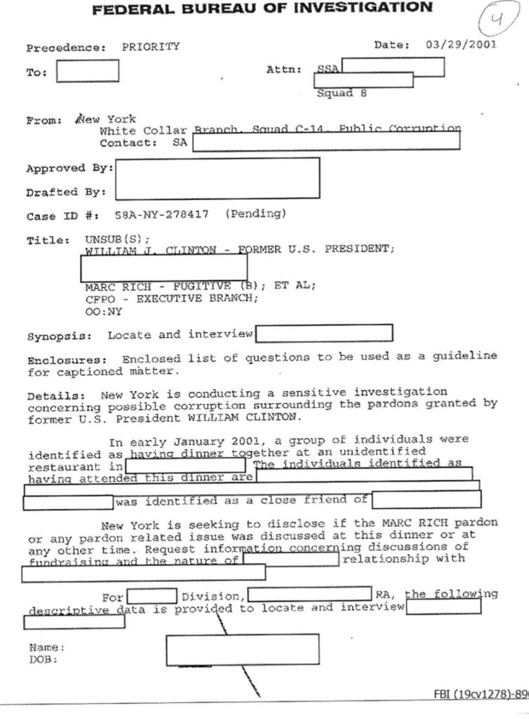 The FBI investigated President Clinton for his incomprehensible pardon of Marc Rich. (Born Marcell David Reich — December 18, 1934 — Antwerp, Belgium)