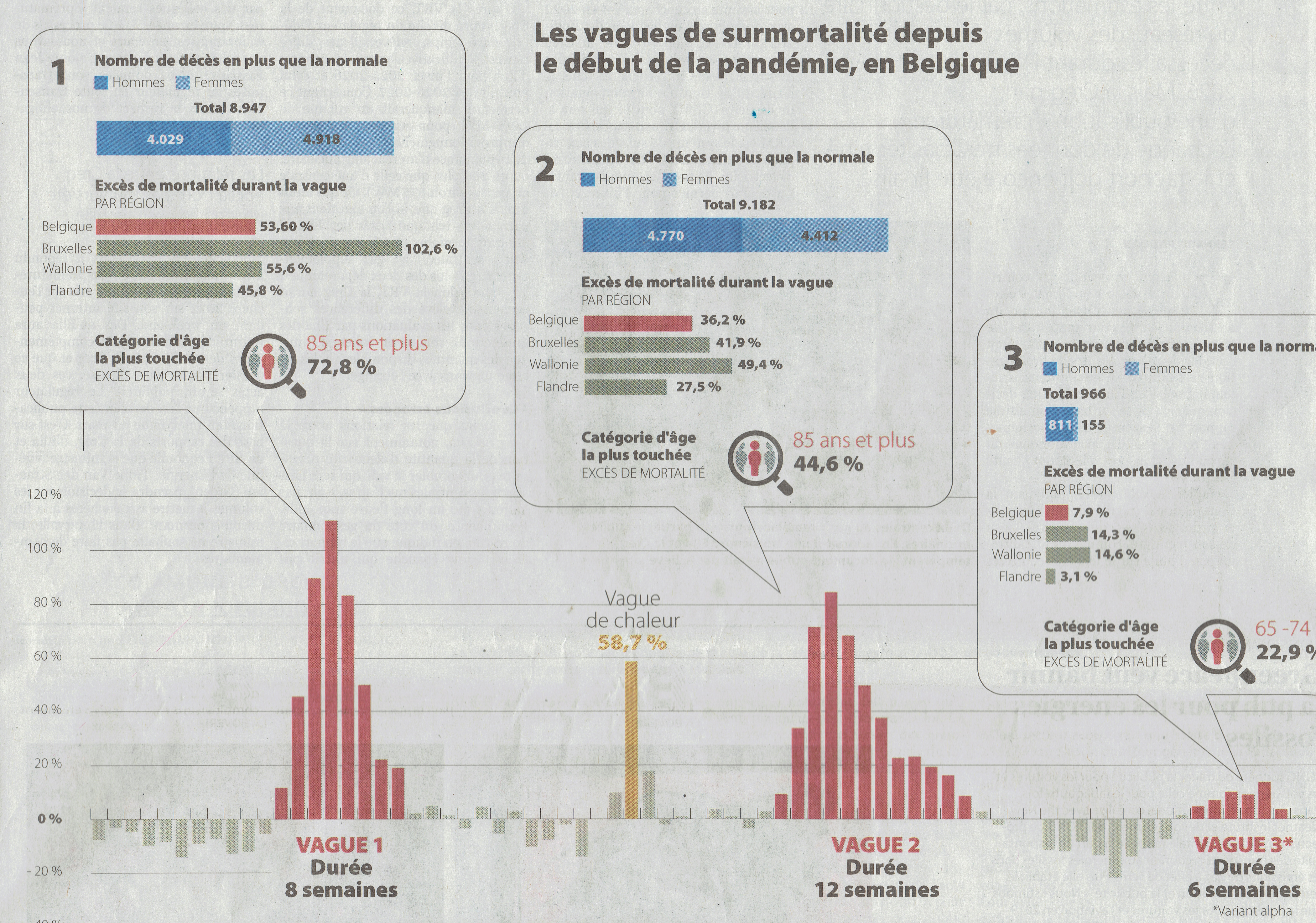 As I wrote in May 2020: “From March 16 to May 10 2020, the over-mortality in Belgium was about 50%. And that is about 10,000 more deaths than what would be expected from the average of the same period in the last 5 years, which is exactly the number of deaths attributed to COVID-19.”