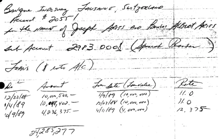 Source Document — Well, here is the PRIMARY evidence of the “US$10 million transaction”. Check the currency! It amounts to a bit more than 10 million Spanish Pesetas! [SCCRC investigators believe that this account may have been used for money laundering operations.]