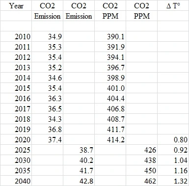 III. The last obvious question is this. What does the EXXON Model predict beyond 2020? On World Earth Day 2022 (April 22 2022), I used to the Exxon model [See update at the end of this post] and data from the U.S. Energy Information Administration (EIA) to predict that Earth average temperature will rise by about 0.12° C every five years until 2040.Time will tell…