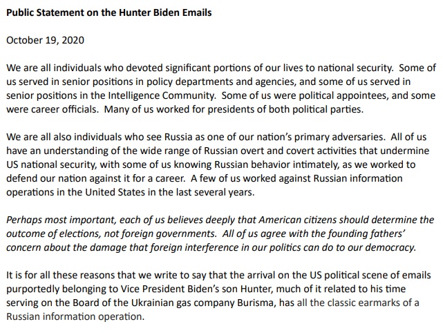 The CIA letter was a piece of disinformation designed to hide a very ugly truth. The Hunter Biden’s laptop story is 100% factual. And yet…