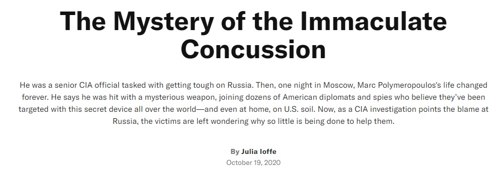 On the very same day — October 19 2020 — GQ Magazine published an amazing story about a former CIA officer — Marc Polymeropoulos — who knew for certain that Russia was responsible for the Havana Syndrome attacks against CIA personnel and US diplomats.