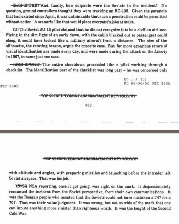 In fact, the NSA had correctly told the US President that the Russians had not been able to identify the airliner and truly believed that it was a spy plane, concluding: “The pilot did his job.”