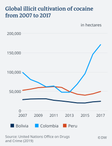 However, despite the 15,000 hectares decrease in coca crops, production of cocaine increased 1.5 percent, to 1,136 metric tons in 2019.