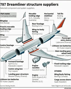 “Boeing is also studying whether almost 900 horizontal stabilisers made at its Utah fabrication plant have gaps that could cause premature ageing in the small wing in the Dreamliner’s tail.
