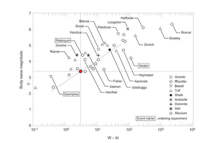 “Goldstein’s research, which appears in Countering WMD Journal, analyzes the crater dimensions, seismic magnitude estimates and the cloud height of the explosion and shows that all the data are consistent with a yield of around a kiloton [of TNT] when water/saturation is accounted for.”